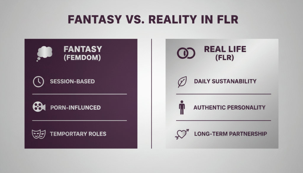 Any relationship where a woman has to be pretentious, perform a role, or reshape herself to fulfill a man’s fantasies is not an FLR. In that dynamic, she is not leading. The man is. And often, he’s just disguising control as submission.
