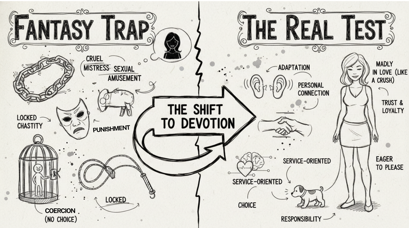 Instead of adapting, many men get stuck. They start believing they can only submit if the woman behaves in a very specific way—strict, cruel, humiliating, sexually aggressive.